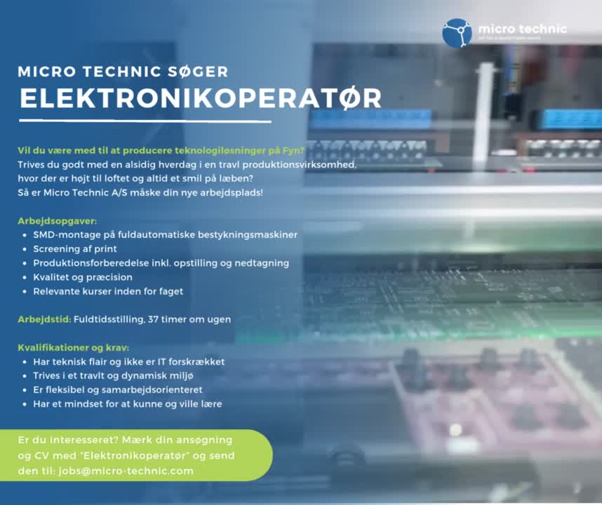 #Jobmulighed #åbenstilling #Elektronikoperatør #MicroTechnic
